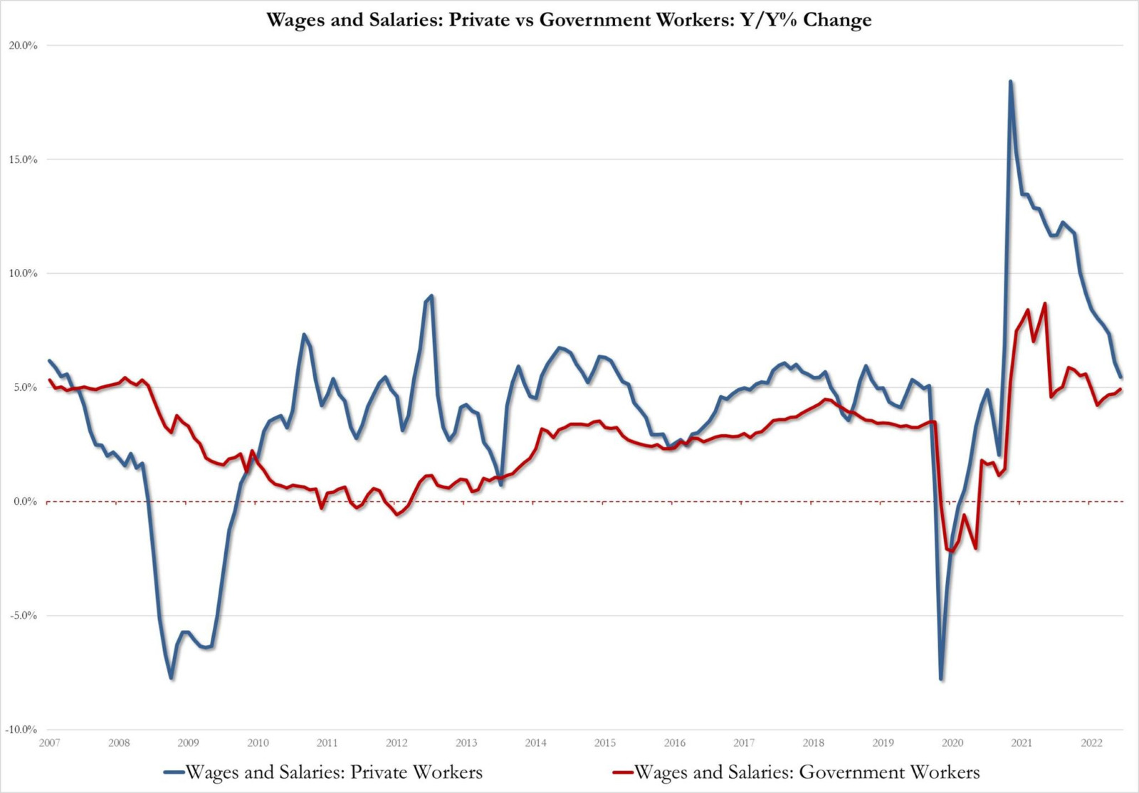 而工資又具高度僵固性,上漲容易下調難,因為有法律與工會監管,也正因為當前的就業環境,讓勞方工會有更多的籌碼要求提高工資,於是各大地區都出現罷工,不管是零售、鐵路還是媒體。
