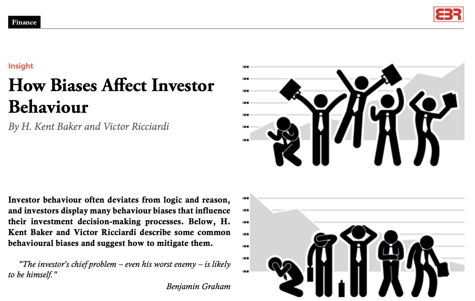 許多會員朋友,聽了最近我舉的「控制錯覺」的例子,覺得特別有趣,希望多多分享相關的投資心理偏誤,這些其實都是投資心理學的範疇,過去曾有一篇滿經典的投資心理學文章,是 Kent Baker 與 Victor Ricciardi,兩位美國大學的教授,經過研究後的論文「How Biases Affect Investor Behaviour」。