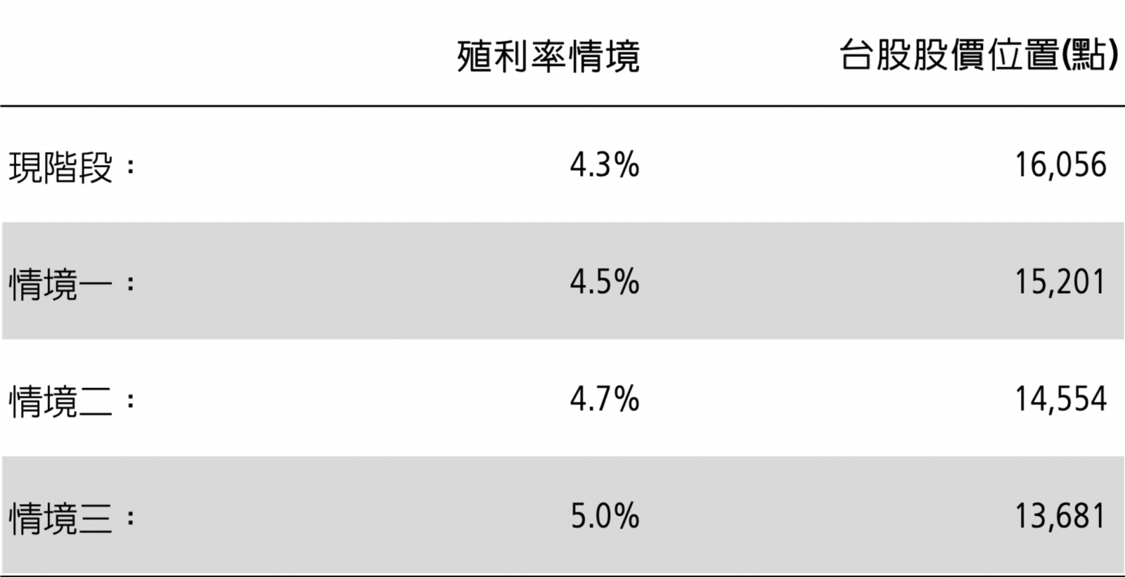 - 如果從殖利率觀察,台股的高殖利優勢往往會吸引長期資金進駐,但過去歷史經驗表明,中期修正的底部,台股殖利率通常會接近 4.7% 才會觸底,目前台股殖利率約 4.3%,如果要到 4.7%,台股預估點位為 14500 點左右,台股仍有加速趕底的機會在。