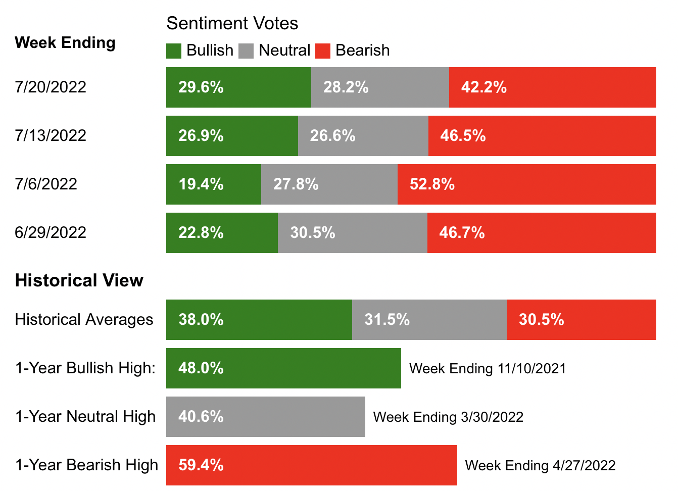 - 觀看情緒指標,貪婪指數已恢復至 39,情緒上已經明顯回溫,美銀 AAII 散戶指標,看多者從七月初低點的 19% 上揚至 29.6%,看空者也從 52.8%下滑至 42.4%,整個市場在過去兩個禮拜的急彈,好似經濟衰退已經走完一樣,當然,作為左側交易者,當股市停止走跌並反彈,我已完全停止建倉,畢竟今年投入資金已多,現金占資產部位從最高五成多剩不到兩成,現金部位也投超過六成,剩餘現金如果急著投完,當股市又反轉時,就會打亂原本的投入步調。