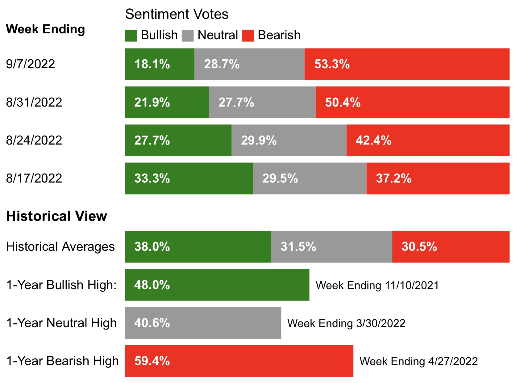 - 不過,八九月行情本來從歷史慣性來看,表現就不是特別好,按照過去美股標普慣性,六月、八月、九月股市通常賣壓較重,這也挺符合今年股市走勢,雖然年底反彈不一定過高,但對美股的基調至少可以在九月份稍微保守。情緒面而言,市場情緒依然偏恐慌,以美銀 AAII 指數觀察,看空情緒高達 53%,是最近一個月的新高,遠遠高於看多者的 18%。