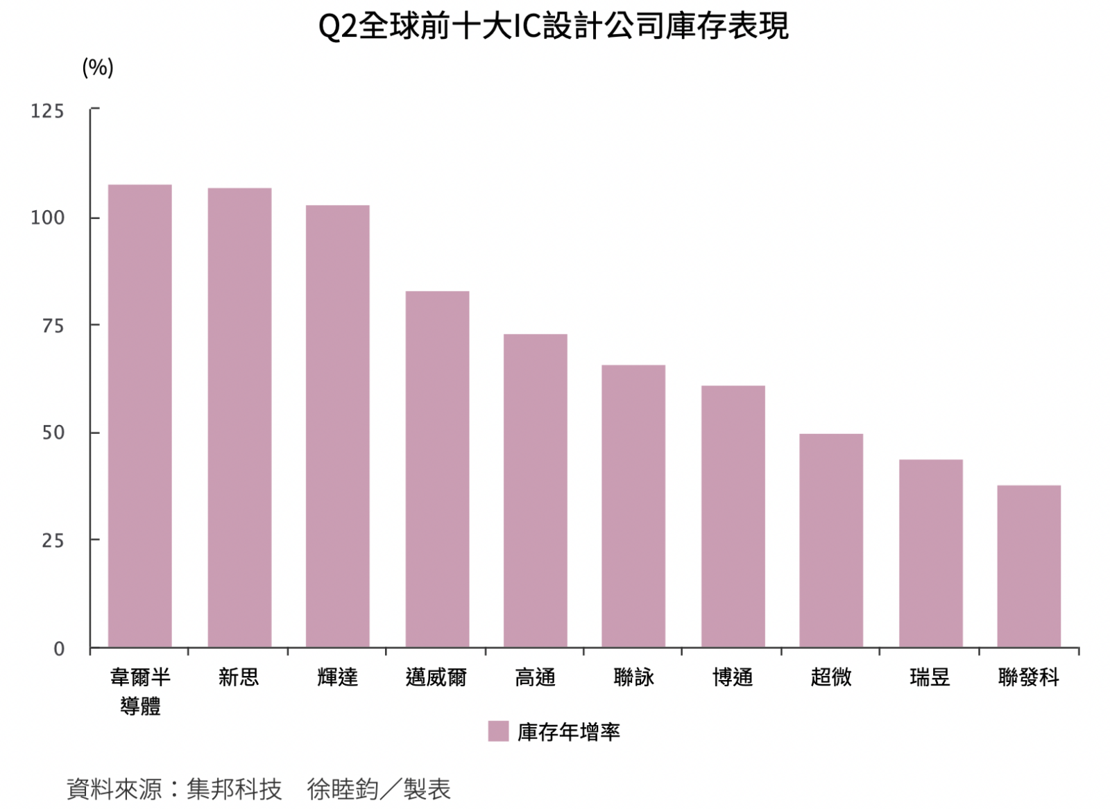 - 如果細看全球 IC 設計公司庫存表現,今年 Q2 庫存年增率都是兩成起跳,台灣作為過去兩年最受半導體刺激的經濟體,受到影響肯定不輕,但是,即便經濟數據疲憊,股市卻始終維持盤跌狀態,更擔心的是,去年半導體產業景氣大好,許多廠商擴大投資,目前全球可能約有 20 座晶圓廠正在蓋,台積電也不斷擴廠到台南、到高雄,幾年後廠蓋好了,產能也開出來,供給突然增加很多,但需求不振,價格會不會下修?就算先進製程不修正,成熟製程肯定也會產能過剩。