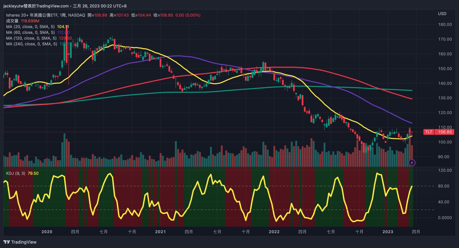 - 這波最扯的是公債,本輪我在去年第三季,市場殖利率飆高之際,開始放大資金佈局美國公債,並打算依循市場利率攀高,一路將債券部位比例佈局到佔總資產 15%,後續雖然在今年三月份回補了一些,但最近價格又開始大彈,且完全沒有反應聯準會的基準利率調升。