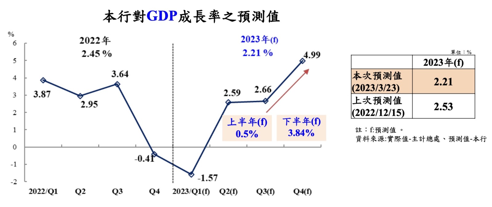 - 台股過去一週比美股還強勁,週漲幅近 3%,績效已經拉到 15.8%,事實上,這波台股比想像中強勁,這跟近期的消庫存進度有關,根據央行對今年 GDP 的預測,雖然 Q1 仍負成長 1.57%,但第二季起就會進入復甦期,並在 Q4 大幅跳升,如同過去我們的回測,股價不會即時反應經濟數據,而是反應未來 6~9 個月的獲利表現。
