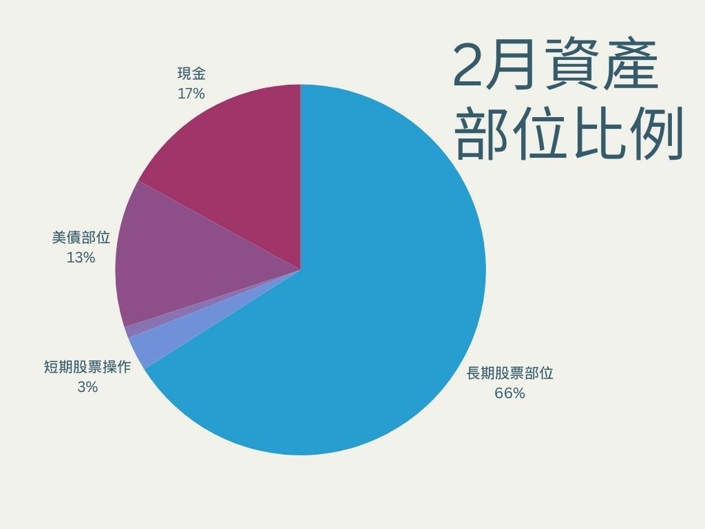 - 回過頭看,雖然過去債券回檔時我積極進行佈建,但由於股價漲幅太快,加上台幣走貶,目前以美元兌回台幣計算的總市值,股市比例再度放大,增速遠遠超越本業收入和債券部位,長期股票部位佔比高達 69%,債券部位 12%,現金部位 16%。