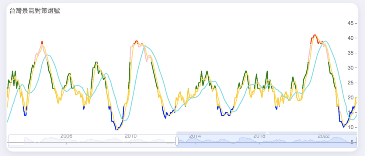 - 回看台股,雖然漲幅不高,遠輸給美股,但從景氣位階來看,仍然有相當大的漲幅空間,以下表景氣信號燈看,雖然股價可能已經在反應主升段,但景氣仍在初升段的位階,只要沒有到綠燈以上,基本都沒有任何下車的可能性。