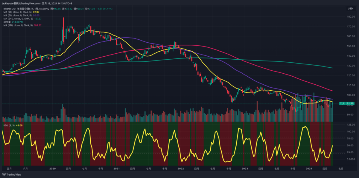 - 近幾週債券價格皆有不錯的表現,但長期來說仍在下方築底,由於股債都創下短期內新高,目前我的總資產皆顯著上揚,使現金部位比例減少,也就是說,我的現金水位其實投得並不多,但由於相對股債沒增值,使得比例看起來變少了。