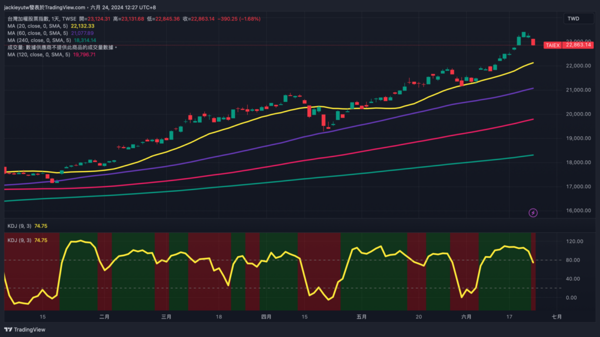 - 補:周一股價大幅下跌,不過不管從週乖離還是日乖離,都仍在高檔,目前並沒有立即增持意願。