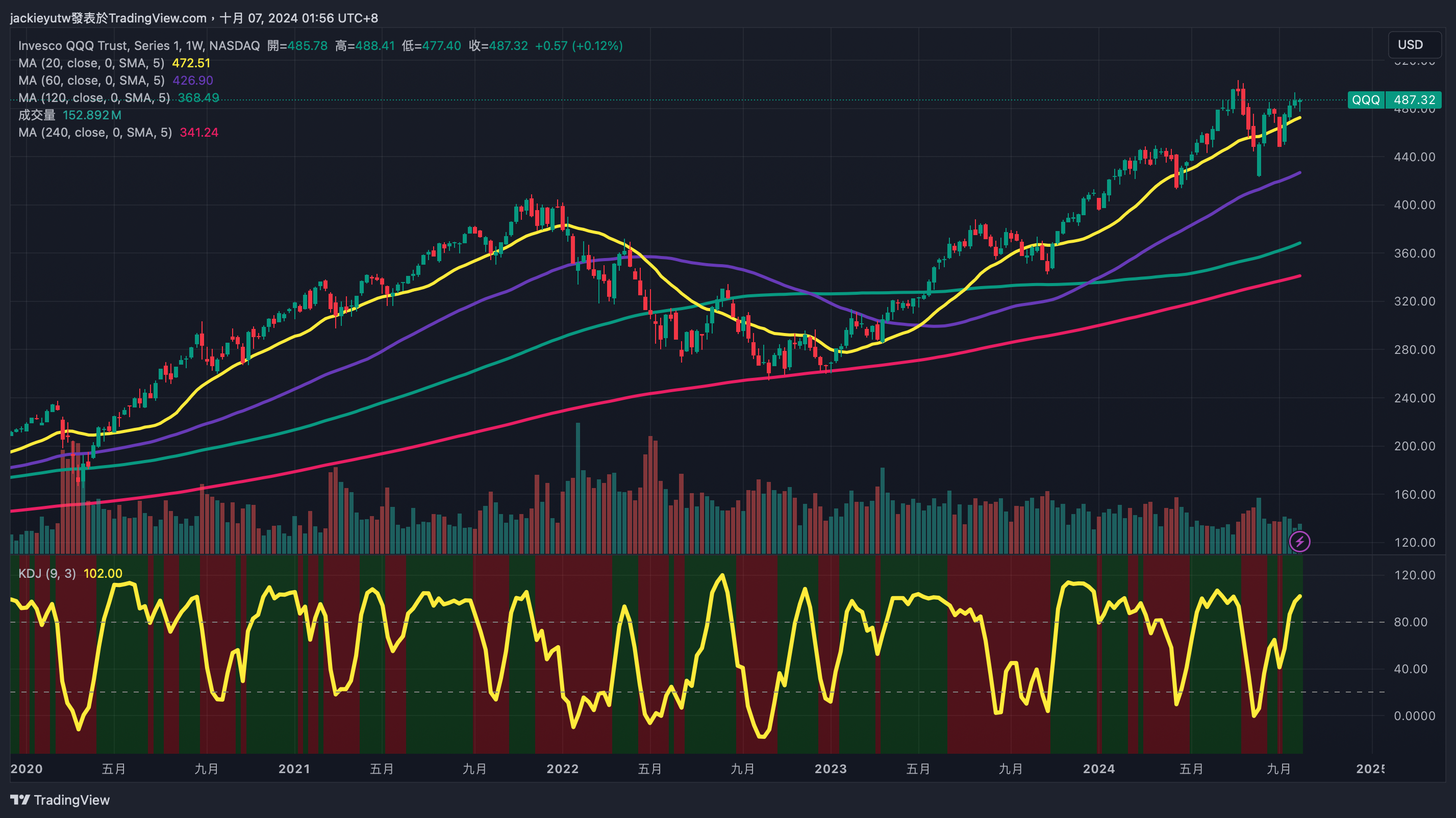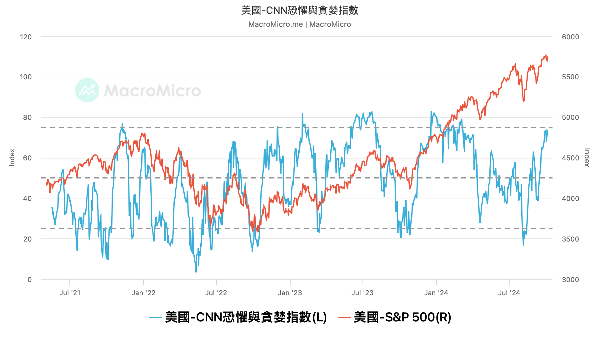 - 當然,短期內,乖離和情緒的確都有過度推高,從恐懼貪婪指數觀察,目前已經來到 73 的貪婪位階,情緒已經回到今年六月高位,再來是乖離拉抬,周乖離也來到高位 102,現在不管是短期或長期都不宜做任何買入。