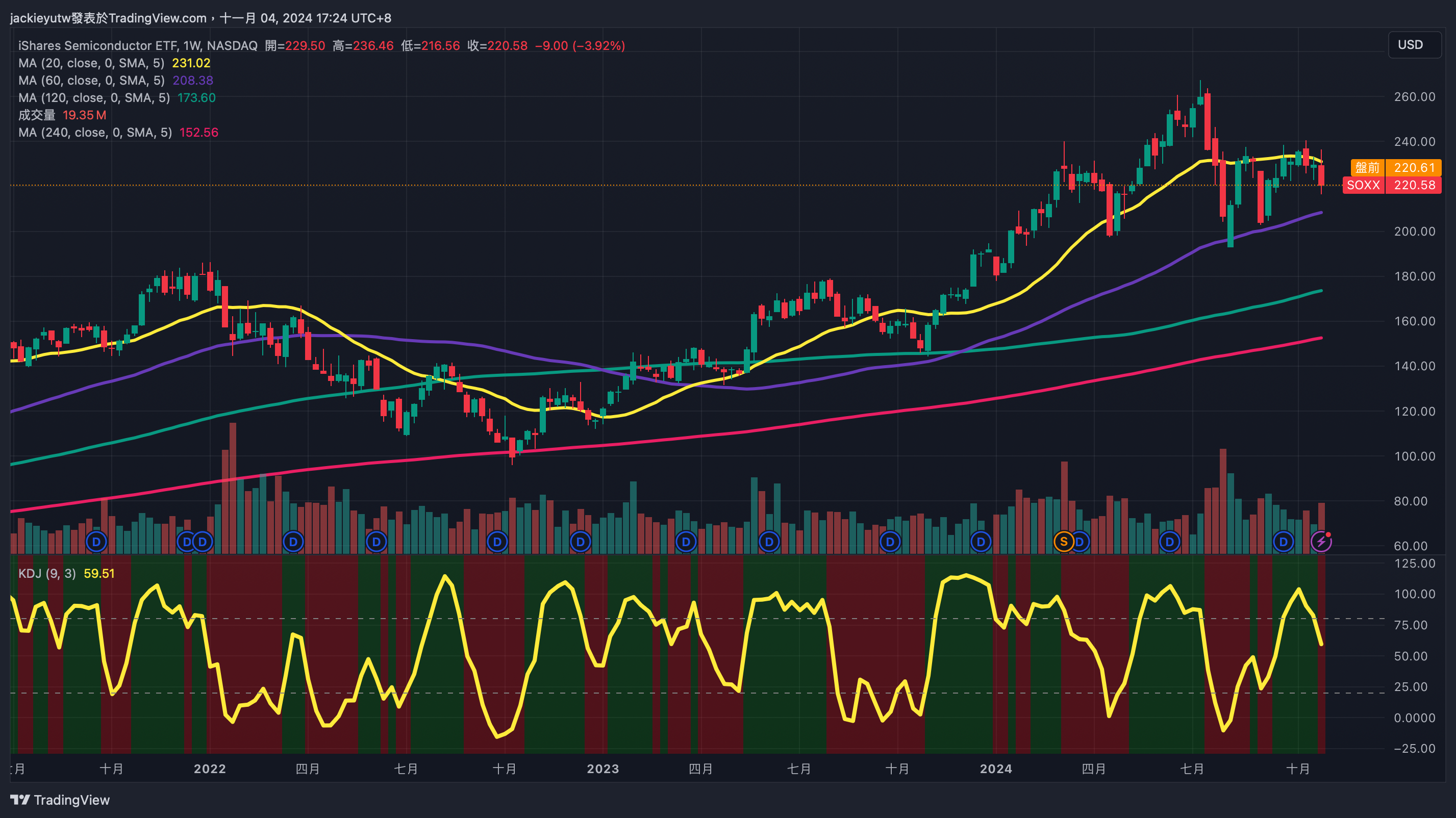 - 債券真是慘不忍睹,一方面反映市場的不著陸定價,另一方面也反應大選後的通膨風險,價格幾乎已經貼回我的成本價,等於過去一整年,我真的只有領到配息,短債和投等債沒漲多少,長債則完全沒有帳面獲利。