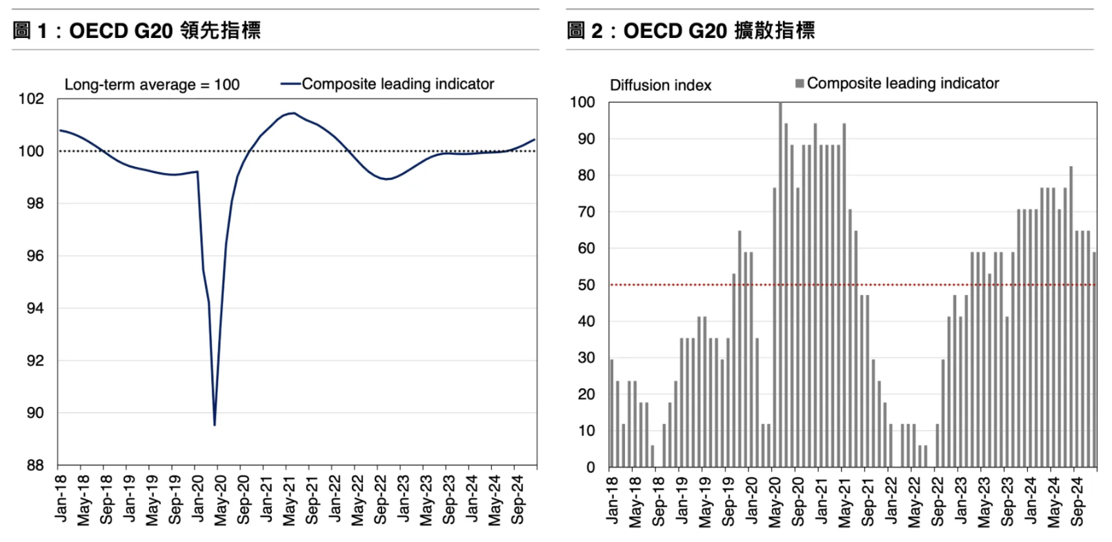 - 過去一週美台股市皆有顯著反彈,這幾週就這樣盤來盤去,要買沒有好位置買,要賣也等不到時機,那就繼續等待吧,好處是,基本面領先指標仍然在上行,往絕對繁榮的方向前進,根據 OECD 發布的 12 月 G20 領先指標,已經連續第 12 個月成長,美國經濟領先指標則是連續第 6 個月擴張,且速度持續加快。