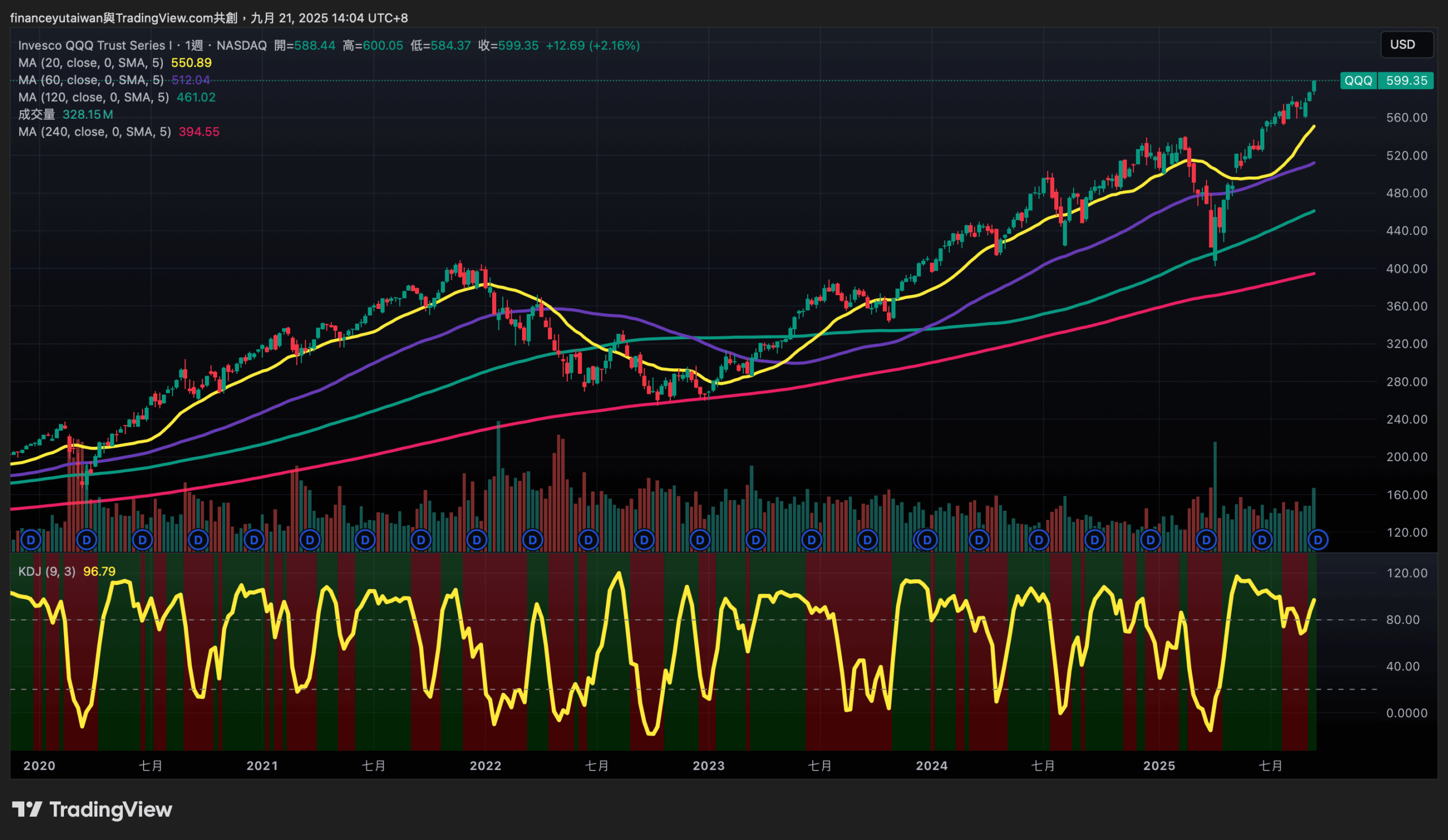 - 本週股市部位又衝高,費半 SOXX 單週上漲來到 4%,QQQ 週漲幅 2.16%,006208 上漲 1.49%,所有股市部位都創下新高,由於膨脹速度太快,目前又再度超過總資產部位的 8 成,現金部位又再縮小,都覺得這波漲得有點心虛,漲得有點不好意思。
