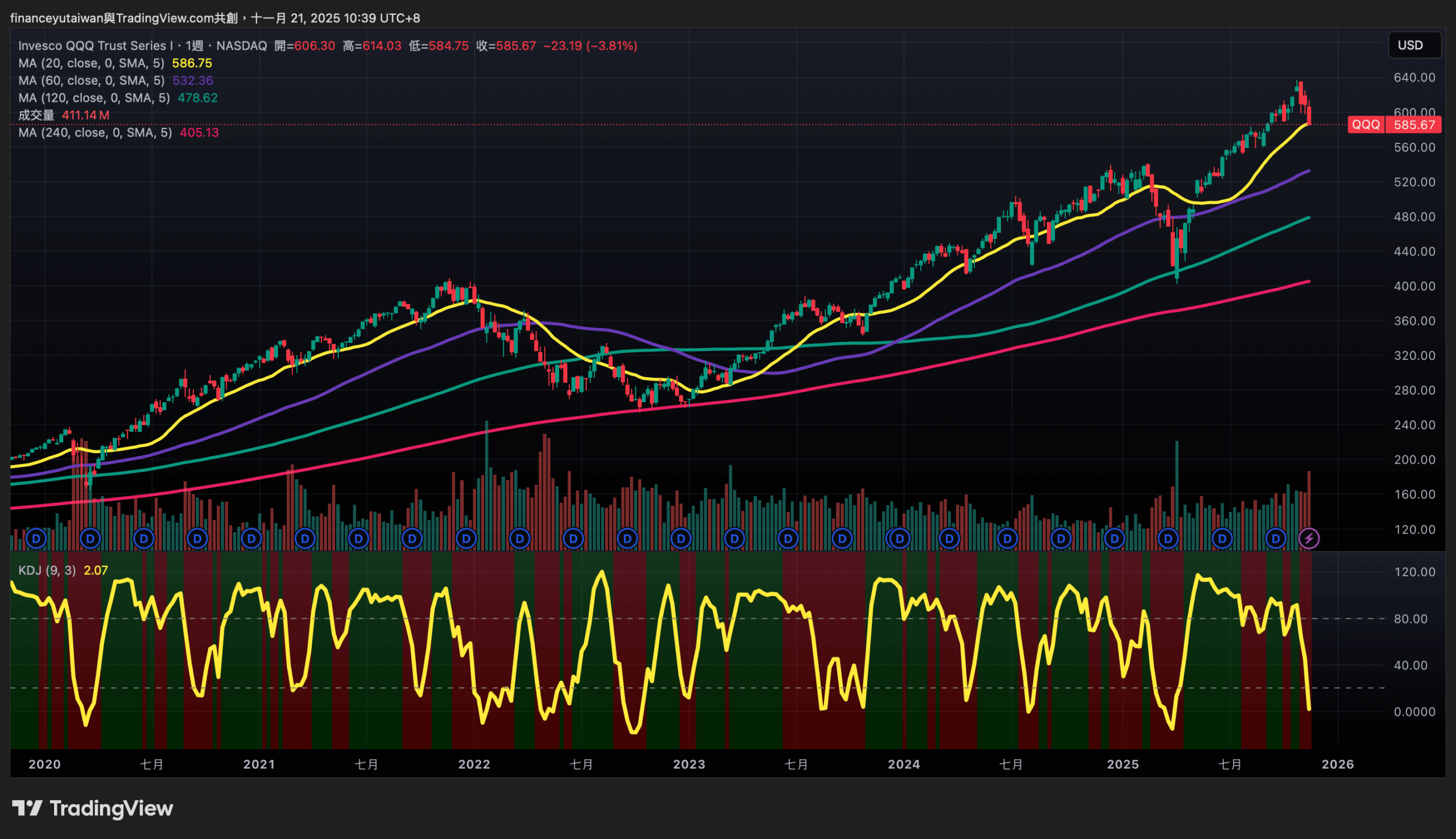 數據更新。本日不管是情緒指標、週乖離指標都已到達低位,加上景氣指標,仍位於低檔緩步上行,尚未到達風險過高的景氣繁榮期,我已開始根據週期投資,進行佈建,優先回補跌幅較重的那指 (自高點跌幅 8%) 與費半 (自高點跌幅吧 13.5%),台股則小幅度回補,一方面是跌幅較輕,另一方面國安基金至今仍未退場,護盤身影濃厚,暫時將本次下跌,視為一個季度的中期回調,週末後續補上看法。