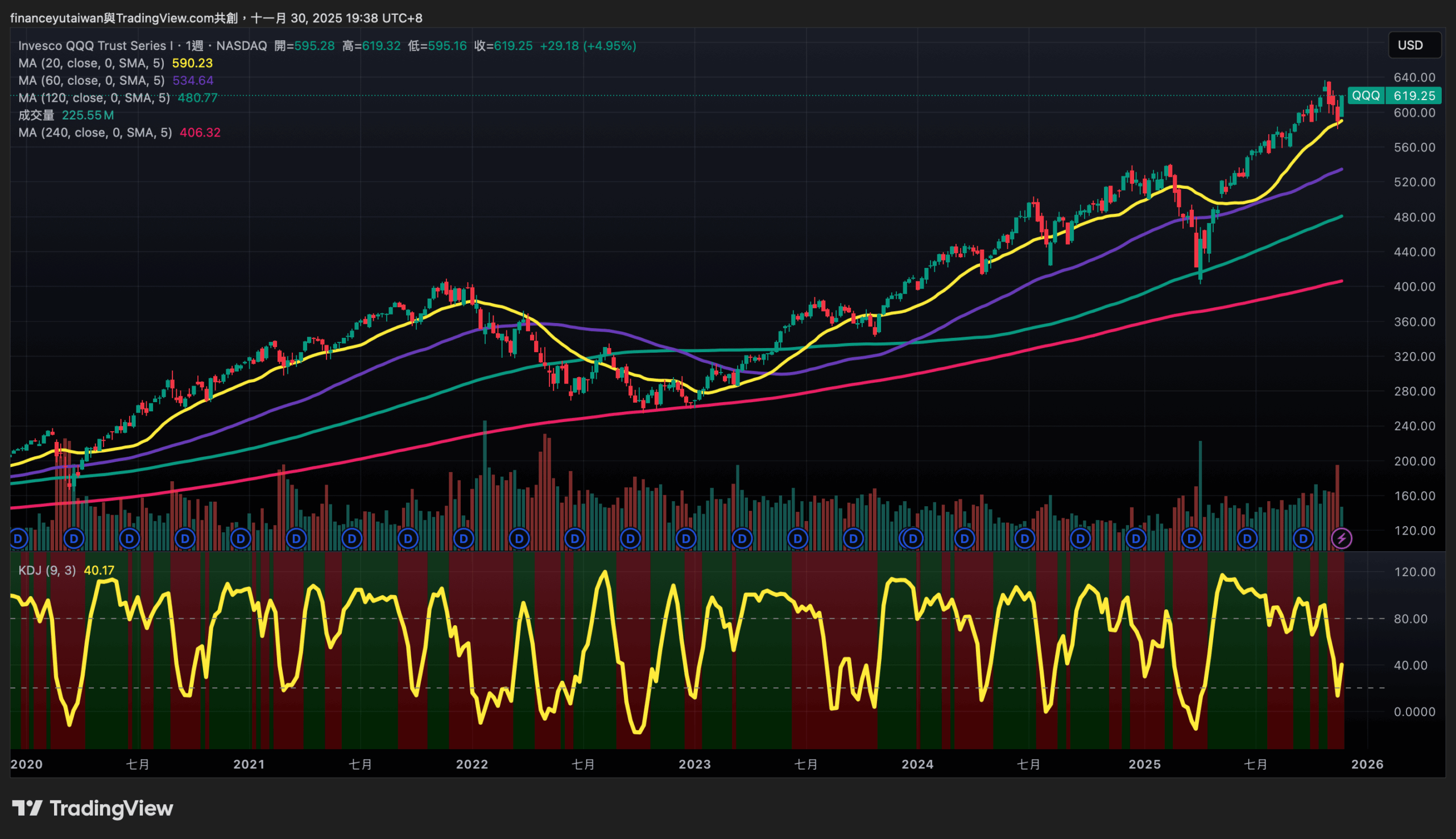 - 好景不常,本週全球股市便開始反彈,自上週五開始買入後,本週僅在週初小幅佈建,後續上漲後並沒有太大空間,這次部位買得不多,市場真的越來越有 FOMO 心態,目前仍維持 10% 左右的現金水位,如果週乖離再度下彎,仍考慮持續買入,但目前這種大反彈,可能比較沒有太大買入誘因,畢竟資產比例剩下 10% 現金,說多不多,說少也不算少,我更願意等待大一點的乖離回調。