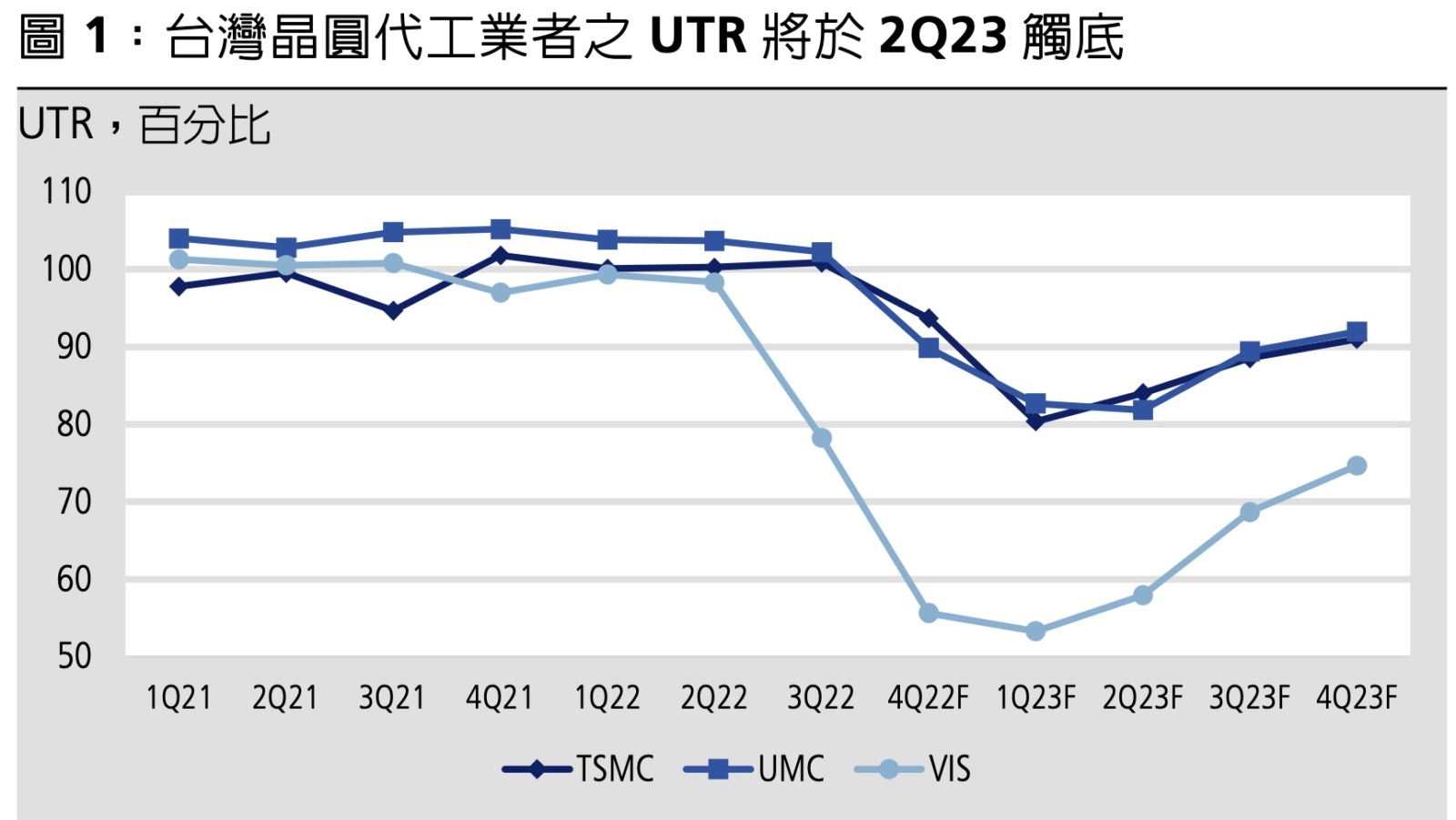先以影響台股權重最大的台積電觀察,台積電的產能利用率,第三季開始鬆動,第四季預估下滑至九成,預估明年第一季將來到 8 成見底,庫存大幅下滑也會在差不多時機出現,按照過去股價與獲利關係,通常在 EPS 見底前 6 個月左右來到,也差不多是當前時機。