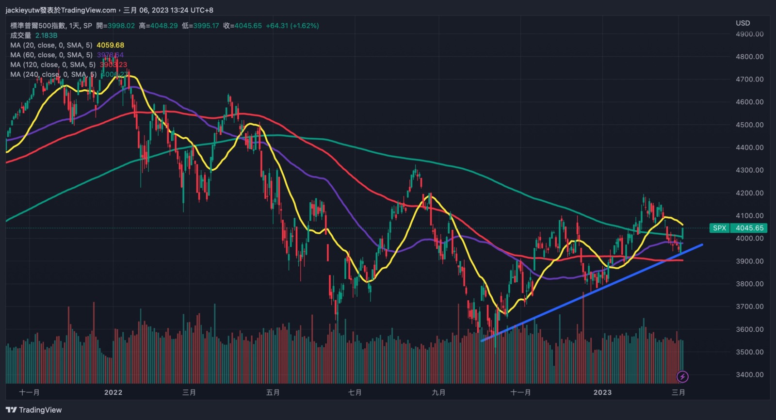 不過,這種狀況的可能性偏低,因為目前的情況,更像是通膨想要下行,聯準會就得加倍放鷹,但聯準會加倍放鷹,資產就難以有炒作空間的這種僵持狀態,如果說 2024 年,通膨已經因為基期有顯著下行,那還有可能發生,但在 2023 年是難以看到聯準會有鬆綁的信號。
