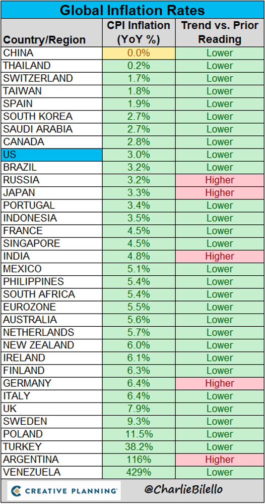 過去兩年,全球深受高通膨所苦,但如果細分,全球通膨率有高有低,比如有些國家在 2023 年通膨仍衝高或高位盤旋 (如德、英) ,有些國家已進入通縮 (如中國) ,總的來看,亞洲新興市場經濟體通膨較低,歐美較高,這跟經濟體質和民間消費有關,亞洲人儲蓄率較高,較不容易消費,歐美人儲蓄率低,願意消費且是最終端消費國,通膨較高。