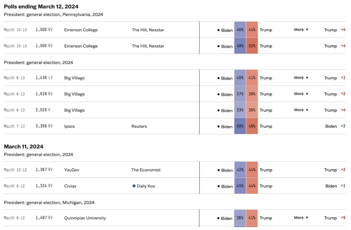 事實上,美國大選民調機構數目眾多,多數為媒體、大學、智庫,針對今年大選,美國大約有 500 家機構提供總統民意調查,由於民調過多,且有許多智庫具嚴重黨派立場,所以,美國知名民調網站 FiveThirtyEight,就根據機構透明度、民調誤差、偏差、樣本量等,構建了民調機構評級體系,在評級排名靠前的民調機構有:紐約時報、ABC 新聞、馬凱特大學、YOUGOV 等機構,這些機構皆顯示,川普領先拜登約 3% 的民調。