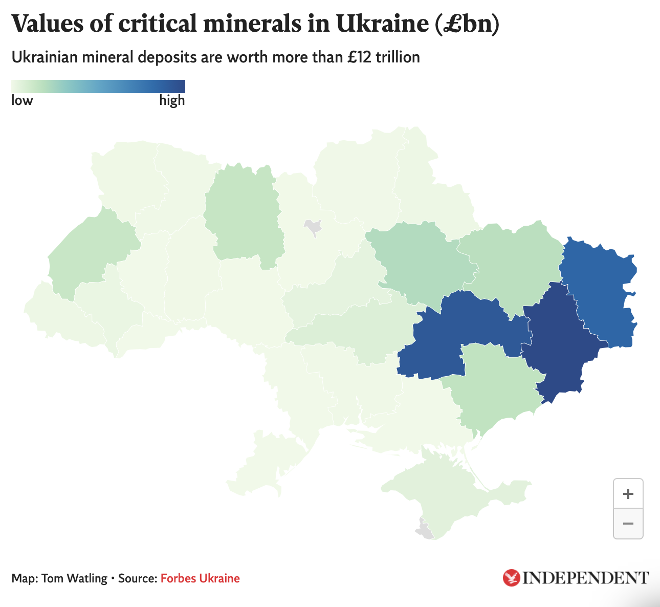 對烏克蘭而言,若依照當前戰況結束戰爭,不僅可能徹底失去克里米亞的主權,也未必能完全收復烏東失土,甚至可能需讓渡大規模的稀土開採權給美國。