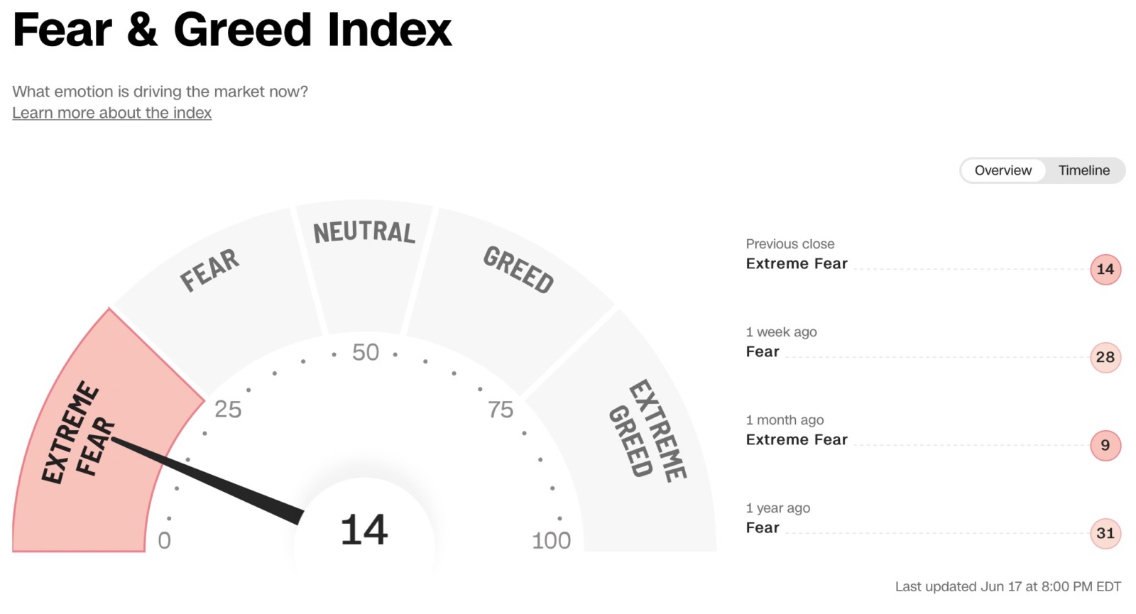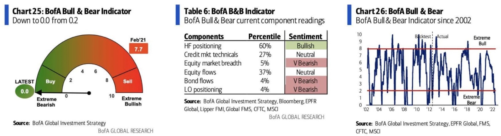 - 有些人問,那我如何確定目前短期內恐慌已到極致,在未來兩週可能會反彈呢?原因很簡單,我們從貪婪指數與美銀牛熊指標觀察,貪婪指數再度下滑至 14,美銀牛熊指標居然已經到 0,市場當然有可能持續恐慌,但短期內必然有情緒回穩的時候,而中長期來看現在這個點位做資金佈建,肯定會比未來幾年回到慢牛的點位更便宜。