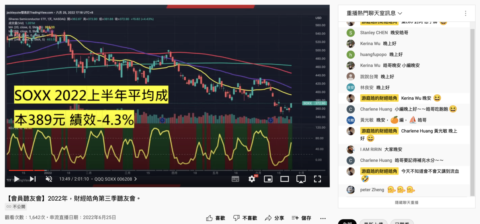 - 台股也創了 13 個月新低,不過自高點跌幅仍在 15% 左右,遠遠落後於四大指數的跌幅,長期關注我的會員朋友也知道,我從去年年底聽友會,就認為台股基期過高,尤其年初時台灣景氣指標都已下滑,但台股硬是撐在高位,今年一直到 5 月才做比較大資金的中長期佈建計畫,也差不多是台股跌幅接近 15% 的時候。
