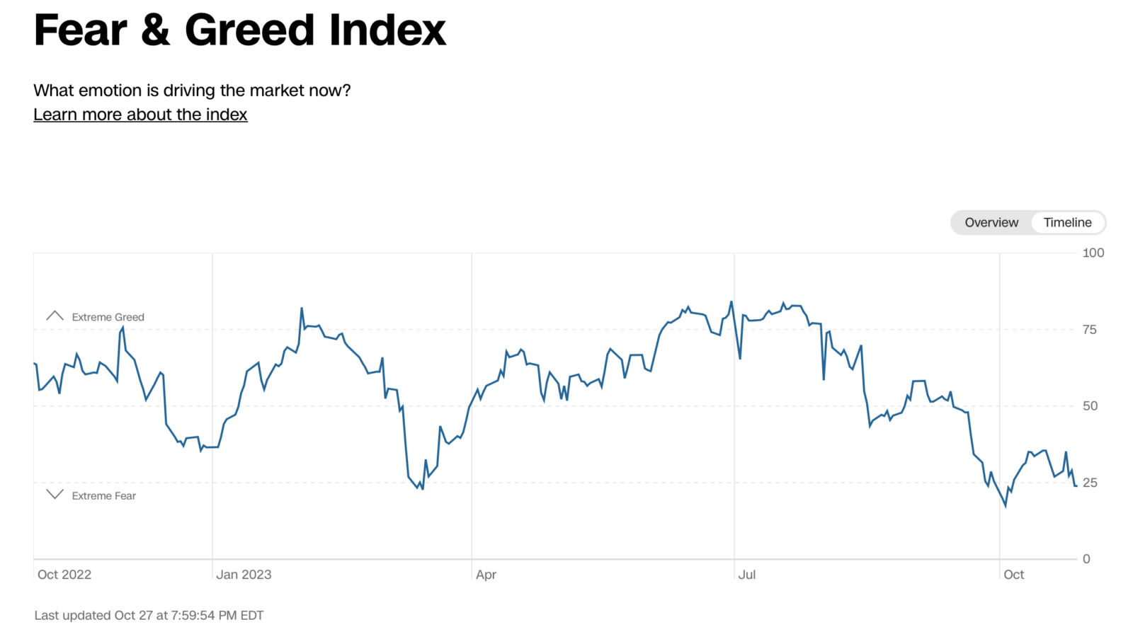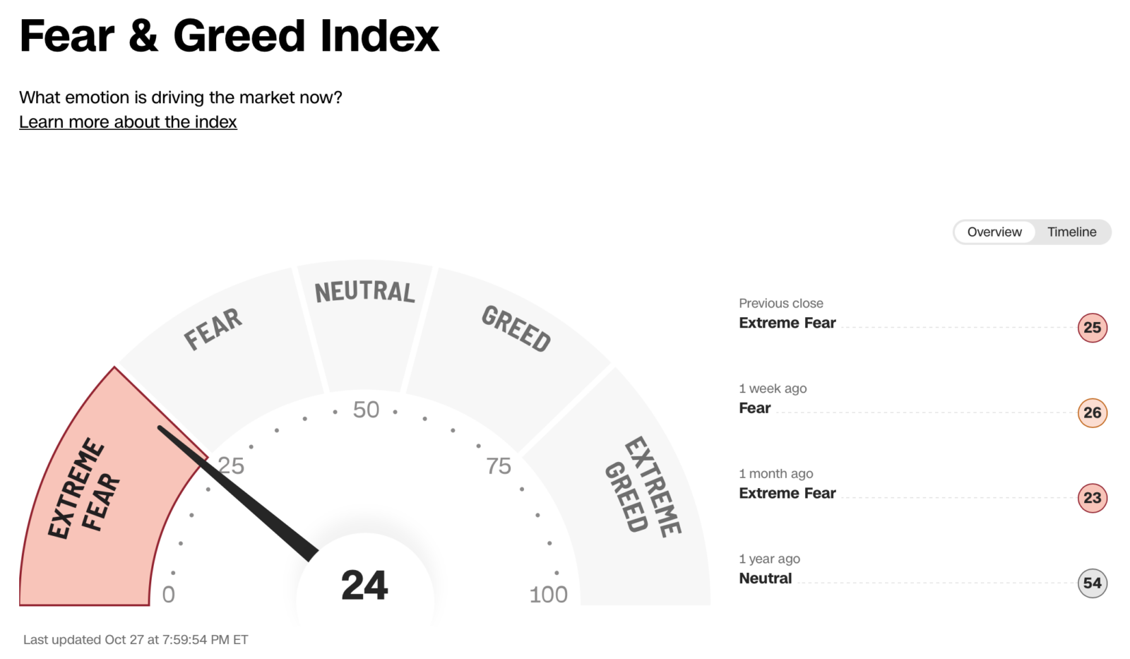 - 事實上,目前多項指標已經透露,投資人已經從 6 月的 AI 熱潮當中退卻,貪婪指數回到 24,今年六月可是衝高到接近 80 過,這也是今年上半年我沒有太多佈建得機會,原因有兩個,第一,因為市場沒有到非常恐慌,第二,週乖離每次都要回檔不回檔,想買可能隔天就漲回去了,現在乖離和情緒又回到去年十月水準時,更應該把握這些機會。