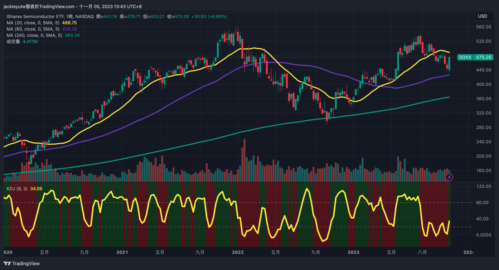 - 本週美股大彈,我持有的 QQQ 與 SOXX 週漲幅分別為 6.49%與 6.96%,將過去兩週跌勢收復,由於乖離再度快速拉升,過去一週已停止佈建,當然,這不代表乖離修正結束,此波更像是空單獲利了解的反彈,只要股市有下殺的機會,我就會繼續佈建。