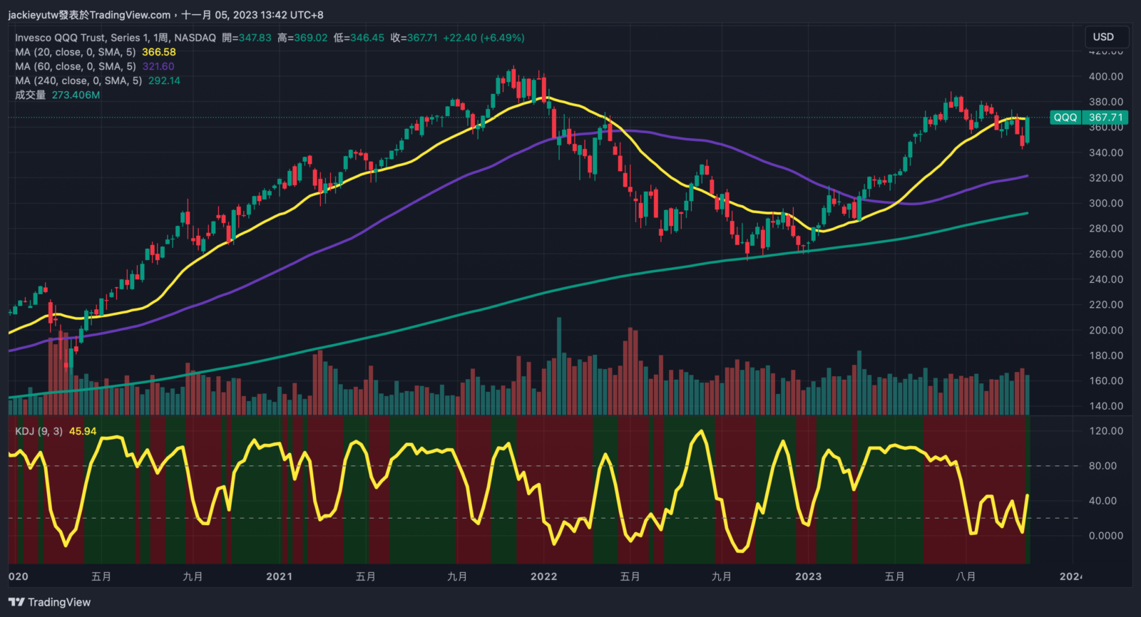 - 台股我曾在週一適度佈局,主要是當天殺太重加上股價破底所致,不過隨後價格就全拉上來了,所以其實也沒買多少,有點可惜,但台股已經盤了這麼久,也早已習慣。