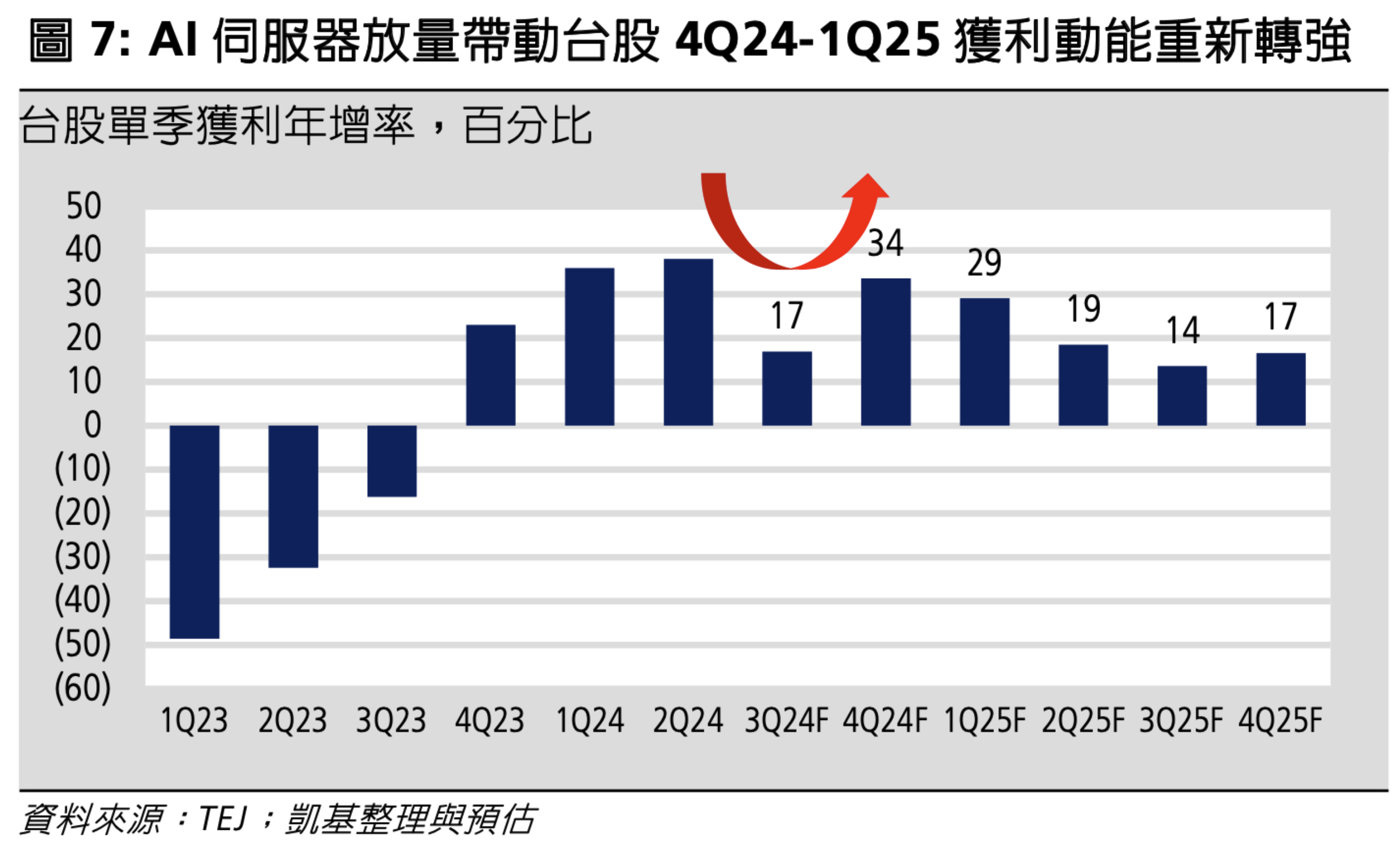 - 這就好像 2022 年台股獲利仍創高,但股價已經提前修正,而 2023 年台股獲利嚴重衰退,但股市已開始反彈,進入新一輪牛市。目前可以確定的是,按照當前上游端的資本支出,台股獲利保持的年增,至少可以走到明年下半年,而到 2025 年底時,基本面將走了 2 年牛市,股市則是走了 3 年,這個時候進行庫存調整的股價下修,都將變得正常。