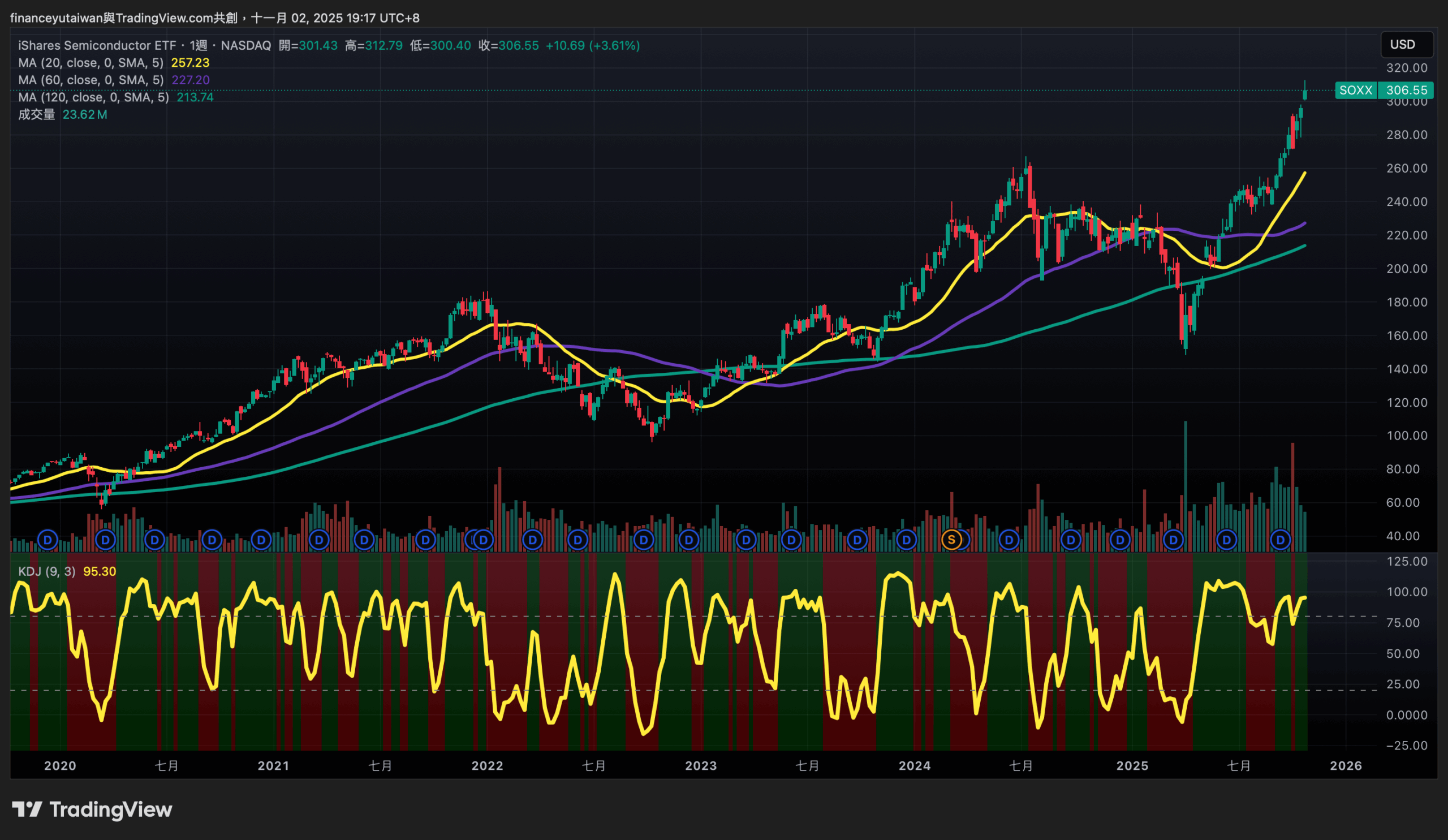 - 美股依舊處於創高之路,有趣的是,最近部分景氣指標,已經開始出現復甦跡象,像是景氣燈號從綠轉黃紅,或是製造燈號從藍轉往黃藍燈,雖然不代表 AI 產業已經帶動全體景氣復甦,但至少可以證明 AI 的亮麗表現,基本可以沖銷其他產業的庫存調整,硬是把整個景氣和市場往上拉動。